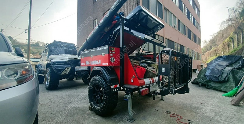 힉스 카고트레일러.. 관리 잘해온 트레일러입니다.. 편의적으로 아웃트리거 4군데 설치.. 트레일러 후미에 후방카메라 설치(견인차량쪽 케이블은 따로 새거 챙겨드립니다)및 탈부착식 리어 캐리어 장착 되어있습니다.. 사이드 박스는 좀 큰사이즈 사재로 제작해서 설치하였고.. 트레일러 상부에 스토리지웍스 더마스터 블랙 하드탑 루프탑텐트 설치 되어있습니다.. 바닥매트,미사용 이너텐트 같이 드립니다.. 루프탑 텐트 설치시 필요한 리프트 설치.. 트레일러 바퀴는 31MT 타이어 장착으로 험로에서도 잘다닙니다.. 가격은 트레일러 270 루프탑텐트 160 측정했습니다.. 합해서는 420 드립니다.. 루프탑텐트는 따로도 판매합니다.. 검사는 2년에 한번 지난 4월 검사완료.. 2027년에 받으면 됩니다.. 그외 궁금하신점 전화주세요 직거래 지역은 동해,삼척입니다.. 010 5224 2968
