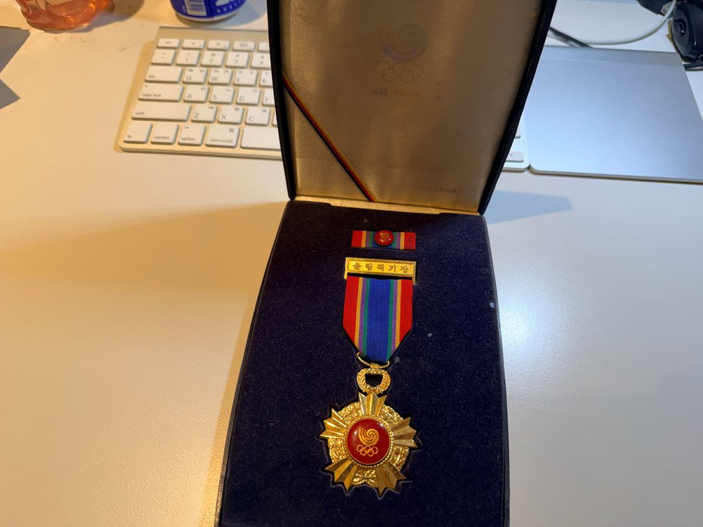 88 서울올림픽 기장 및 약장 기장 및 약장이 고급스러운 각형 케이스에 담겨 있습니다. 올림픽 기념품 상태 좋습니다.