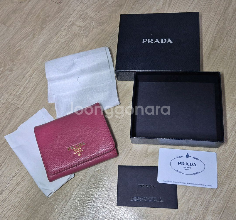 프라다 소가죽 반지갑(핑크) 메탈로고 ART. 1MH176 MATERIALE : VITELLO MOVE(비텔로 무브) COLORE : PEONIA 사이즈:가로11.5*세로9.5*두께2.5cm 23년에 홍콩서 구매후 잠깐 쓰고 보관만 했더니 상태가 멜롱하네요. 사진 많이 올렸으니 잘 봐주세요. 구매시 가격은 50만원 넘어요... 내부-카드수납6, 보조수납3, 지폐수납1,동전수납1 편하게 직거래는 2,8,수인분당선 등에서 가능합니다 [평일 19:00이후, 주말 시간조율] 택배시, GS25 반값택배비는 제가 부담합니다.시간도 돈이라...