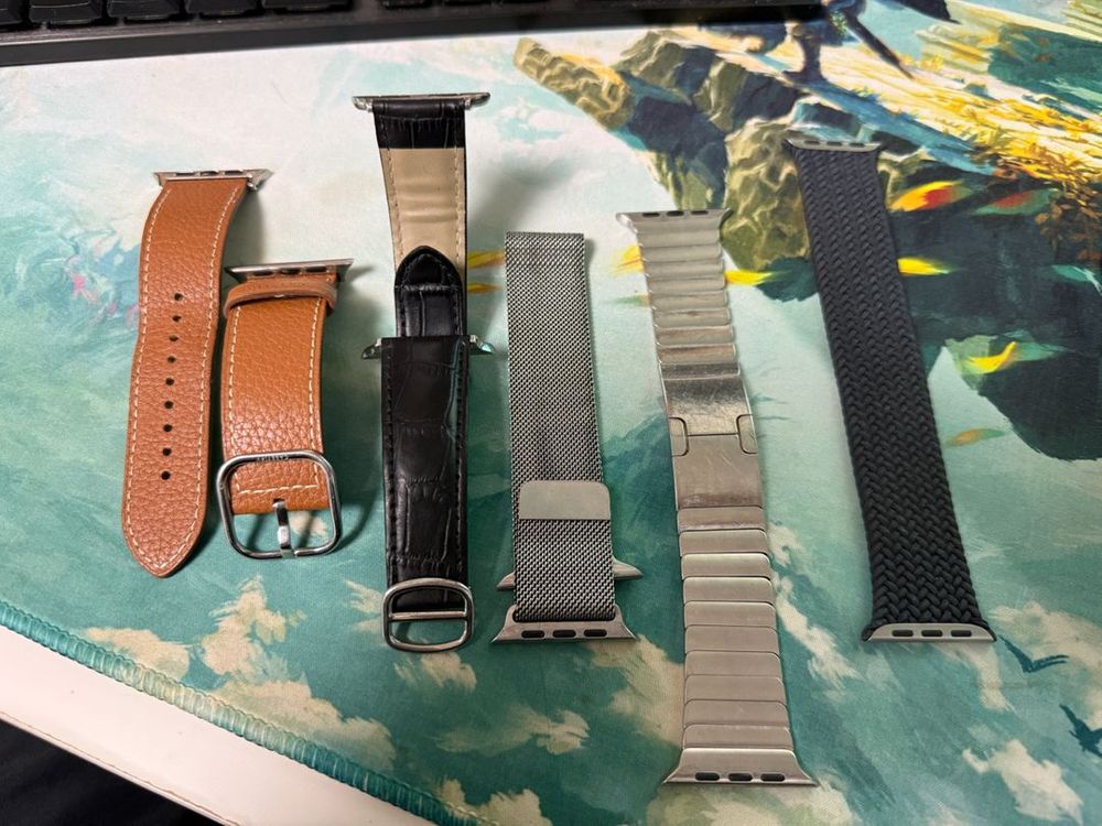 42m/44m/49m 워치 호환가능 왼쪽부터 1. 케이스티파이 이탈리안레더 가죽밴드 15,000 2. 수제공방 밴드 검정 (65000구매) 15,000 3. 애플정품 밀레니즈루프 사용감 많음 50,000 4. 애플 정품 링크 브레이슬릿 사용감 많음 100,000 5. 애플 정품 (이름모름) 밴드 m사이즈 15,000 6. 애플 정품 나이키 밴드(검정) 10.000 7. 애플 정품 나이키 밴드(국방색) 10.000 일괄구매시 18만원 전제품다 박스 없습니다
