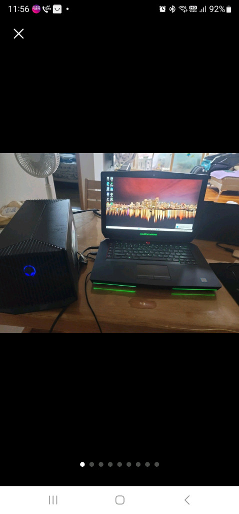 Alienware 15 R2 게이밍 노트북 - Intel(R) Core(TM) i7-6700HQ CPU @ 2.60GHz - ddr4 8기가 2개 16기가 - 870evo 500 기가 - rgb색상조정 그래픽 증폭기만 판매시27만 - 8핀 2개 지원 , 지포스 3080등 지원가능 - NVIDIA GeForce RTX 2060 SUPER 8기가 (지포스 2070과 동급) 철권8 울트라옵 널널하게 돌림 전반적으로 사용감이 있음 비흡연자이며 먼지등 깔끔히 청소 완료 액정,자판 양호 네고 사절 윈도우11 정품 설치 한글,엑셀등 설치