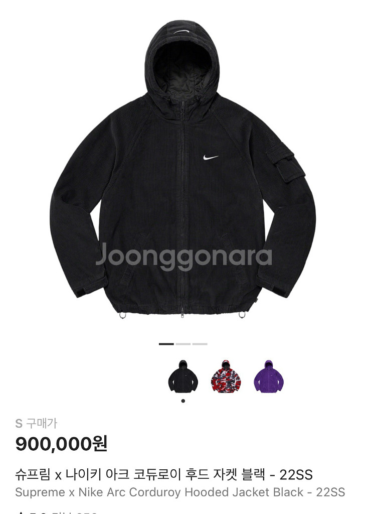 개인정보(거래정보)를 주고받는 행위는 사기에 노출될 수 있으므로 즉시 중고나라로 신고해 주세요슈프림과 나이키 콜라보 아크 코듀로이 후드 자켓이에요. 블랙 컬러로 깔끔하고 스타일리시한 디자인입니다. 정품으로 상태 좋은 제품 판매해요! 1회착용입니다