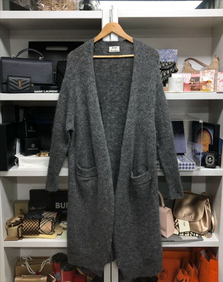아크네 스튜디오 정품 롱 가디건이예요. 차분한 그레이 컬러감이 은은하게 고급스럽고 전체적으로 여유 있게 떨어지는 롱 기장감으로 체형에 구애 없이 편하게 입기 좋습니다. 부드럽고 따뜻한 모헤어 소재로 실제로 보면 더욱 고급스러운 이미지며 브랜드 특유의 미니멀한 감성으로 예뻐요. - 컨디션 매우 좋습니다.