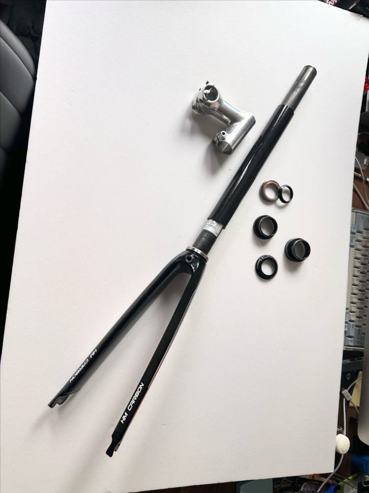 트리곤 451 카본포크입니다. 상태 좋습니다. 기스 한 군데. (사진참조) 스템& 헤드셋 포함이라서 이 구성에 내고는 힘듬. 신품가 50만원대였던…제품입니다. 바이크프라이데이 451, 다혼 451 등 헤드셋 규격이 1 1/4인가…자신의 자전거에 맞는지는 직접 확인하세요. 바프 포켓로켓에 사용했던 제품이라 그 외는 모름.