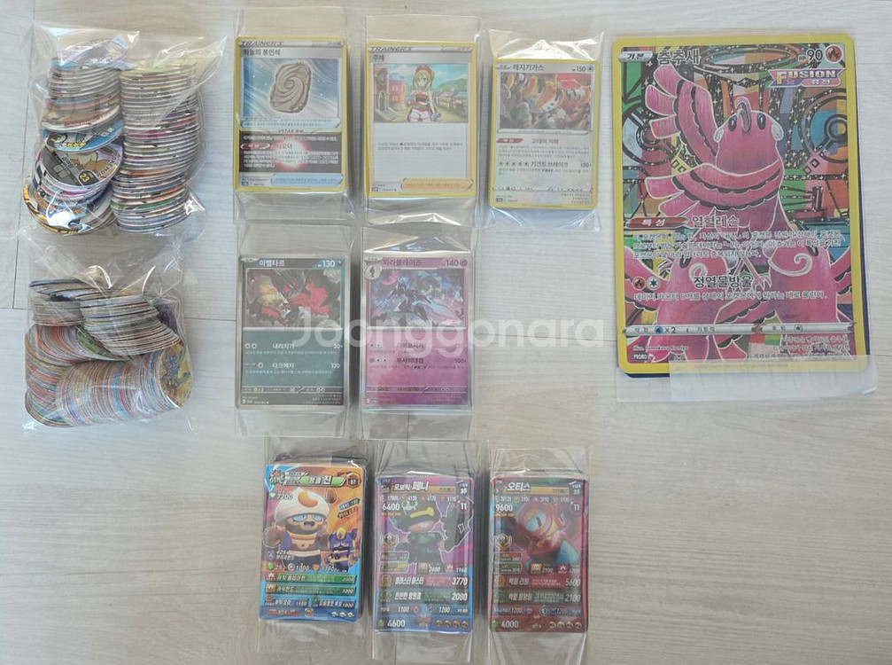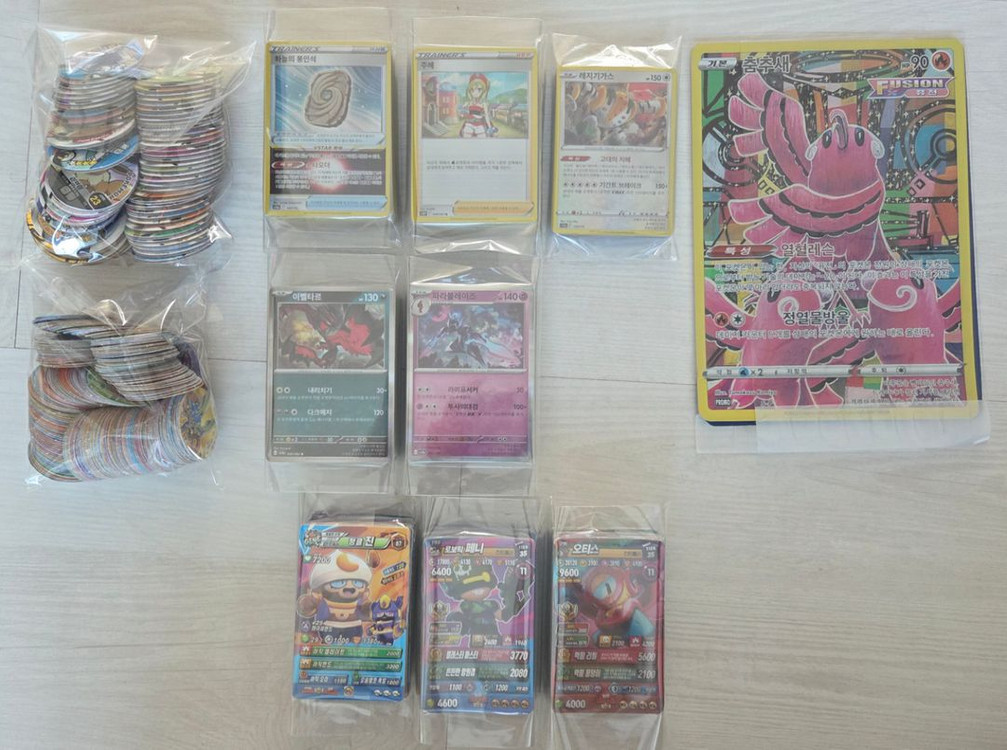 개인정보(거래정보)를 주고받는 행위는 사기에 노출될 수 있으므로 즉시 중고나라로 신고해 주세요 [ 포켓몬 카드, 딱지 브롤스타즈 카드 ] ■포켓몬카드 : 약 350장 ■포켓몬 딱지 : 얇은종이, 두꺼운종이 각 1봉지 ■포켓몬 빅카드 : 2장 ■브롤스타즈 카드 : 약 230장 □판매희망가 : 6.000원 □ 중고거래의 특성상 교환 환불 불가합니다.