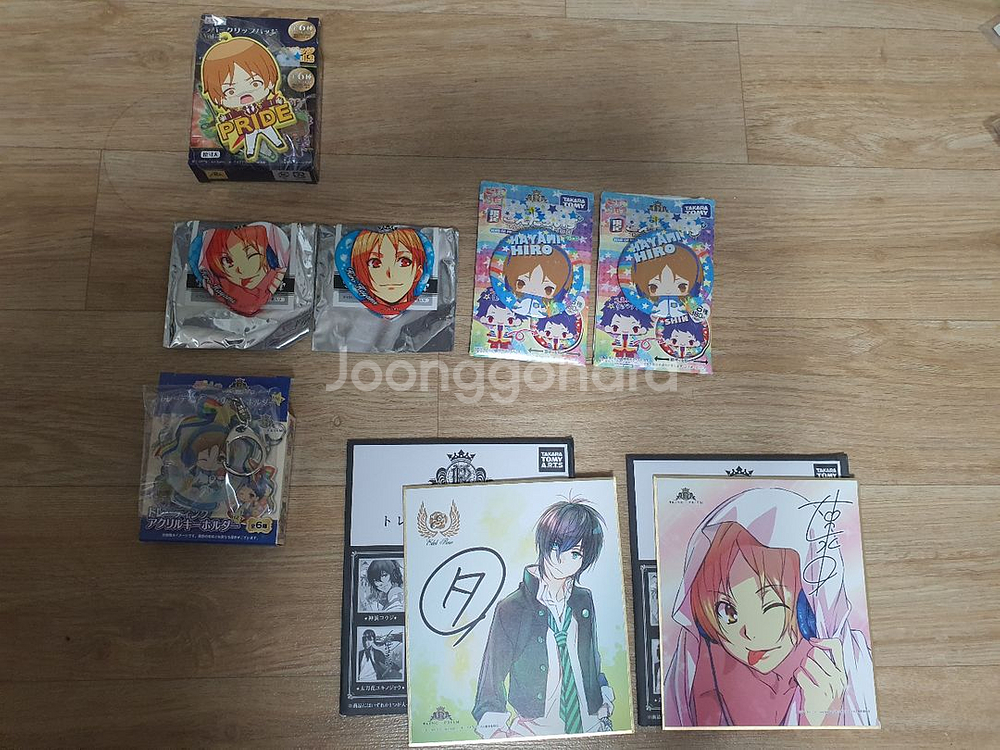 첫번째줄 말랑한 재질에 옷핀?같은 거 달려있습니다. 시크릿이였던걸로 기억해요. 7천원 캔뱃지(두번째줄) 4천원 키링(세번째줄) 7천원 색지 4천원 색지 한 장만 타이가고 나머지 전부 히로 굿즈입니다! 일괄 구매 우대 구매 후 확인만 했었고 그대로 보관해서 상태 양호합니다. 실사용X 사진 확인 부탁드려요!