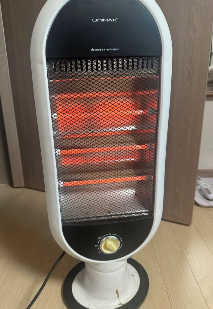 유니맥스 석영관 히터 UM-701KO 모델입니다 - 3단 석영관 히터 - 전도 안전 장치 - 좌우 회전 기능 - 소비전력 700W 올초 겨울에사용.쌩쌩하게 잘나옵니다ㅔ 맨하단 하얀부분이 없는데 쓰러지거나 그런건 아니라 저는 잘 사용햇으며 참고하심됩니다