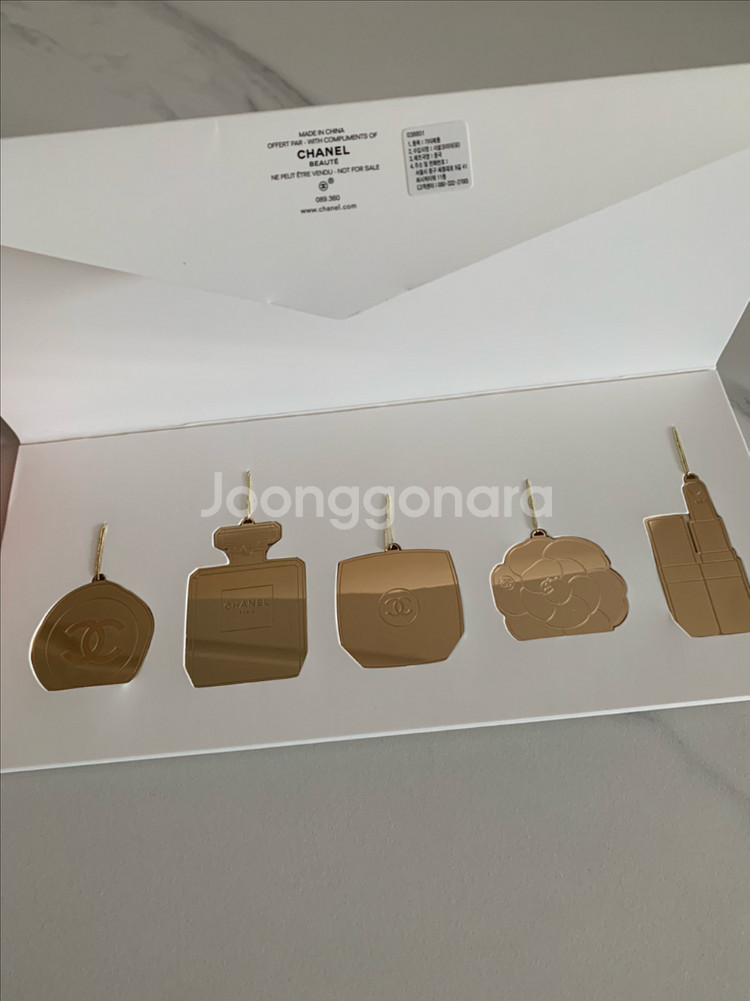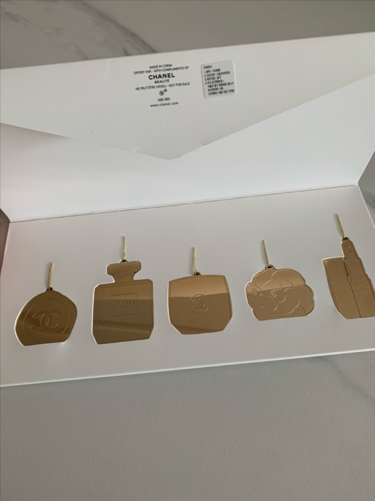 샤넬 뷰티에서 받은 골드 메탈 오너먼트 5종 세트입니다 - 미사용 새 제품이며, 상자에 담겨 있습니다 - 각각 샤넬의 상징적인 디자인을 담고 있어 고급스러움을 더합니다 - 장식용으로도 좋고, 책갈피로도 활용 가능합니다 - 섬세한 디자인과 골드 메탈 소재가 특징입니다 -크리스마스트리나 가방에 하나씩 달아도 예쁠 것 같아요! 물건 확인하기 위해 개봉했지만 새제품입니다. 채팅주세요!