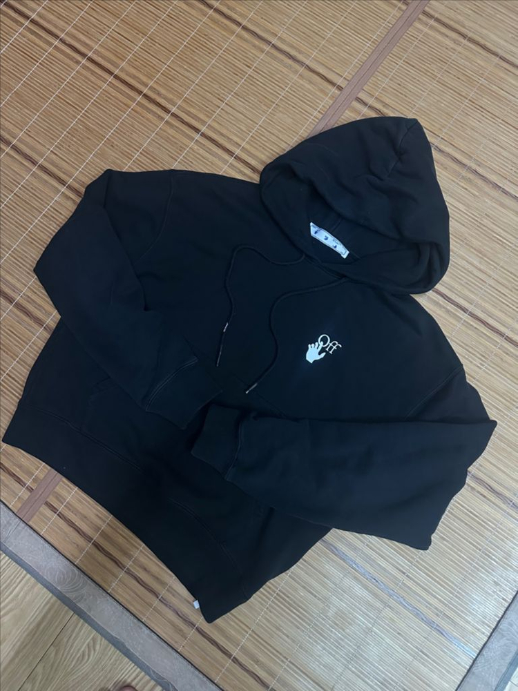 오프화이트 애로우 후드티 표기 m 이고 100L 입으시는분들 정핏 상태 좋아요
