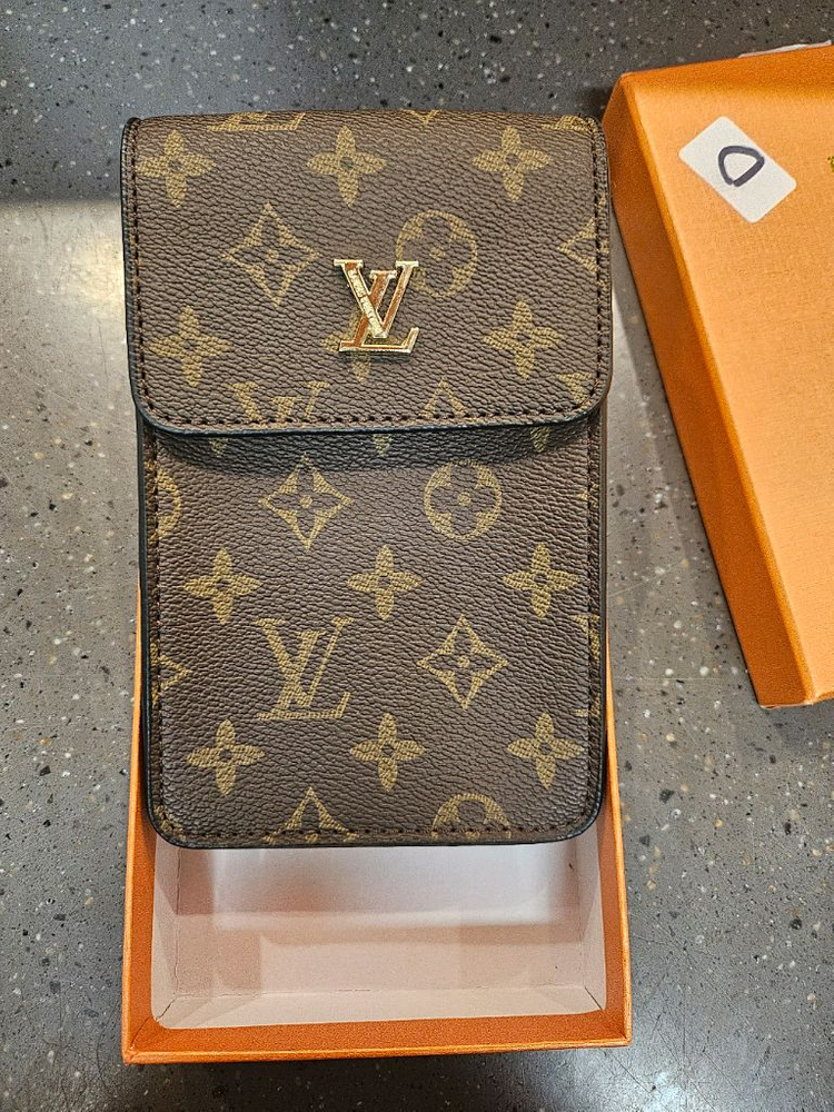 모노그램 폰파우치 크로스백이에요. 골드 하드웨어와 클래식한 브라운 컬러가 매력적이고, 박스도 함께 드려요. 새상품 입니다 크로스가능 5만 노리턴