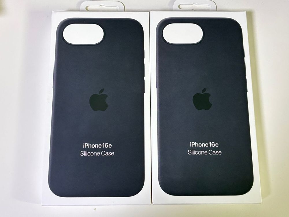 아이폰16e 애플 정품 실리콘 케이스. 블랙 컬러입니다. 두 개 판매하고 있고, 첫 번째는 15000원, 두 번째 제품은 12000원입니다.