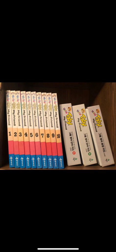 10권으로 이루어진 영어책 시리즈입니다. 책 10권 비디오 10편 (각 23분) 낱말카드 1,2 총 40장 문장카드 40장 오래된 책이지만 내용 구성이 탄탄하여 영어학습 기초단계에서 사용하시면 분명 도움이 되실거에요 🙂 영어를 시작하는 어린이부터 초등학생들도 재미있게 공부 할 수 있는 정도의 수준이라고 생각합니다. 첨부한 사진은 1편과 10편 책의 첫 장 내용과 낱말카드와 문장카드이니 참고해 주세요. 𖤐 비디오 𖤐 구성이라는 점 꼭 주의해 주세요. DVD가 아닙니다. 📦택배가능
