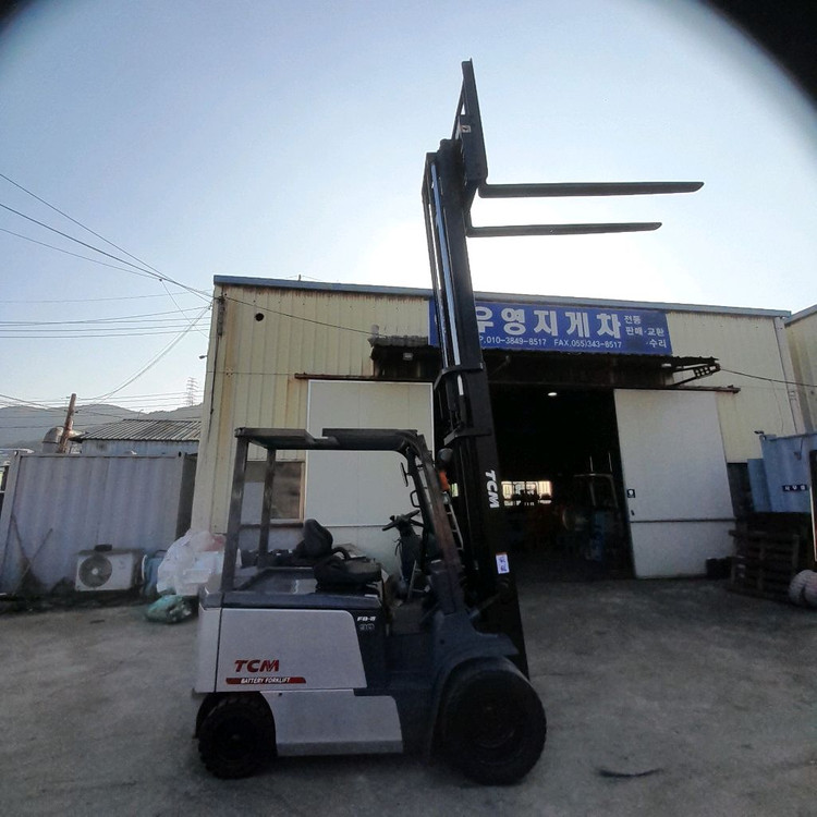 TCM 전동지게차 3톤 각개식자동발 레버4개 지게발슬라이드 봉타입 2단 4.25미터 상승 앞더블통타이어 뒷통타이어 배터리 상급 지게발길이2미터 앞유리와이퍼 다운트랜스 포함 지게발이 높이 올라가고 더블타이어 라서 안정감이 있습니다. 운반비, 부가세별도
