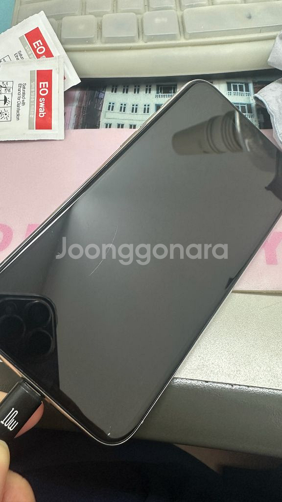 아이폰 11 Pro 실버 색상 판매합니다 - 256GB - 액정에 잔기스 하나 있고 전체적으로 사용감 있어요. 사용하던 아이폰 11 pro 내놓습니다. 사용감이 좀 있지만 깨끗하게 썻고 정상 작동합니다. (사용감 예민하신 분은 피해주세요) 베터리 최적화율 86% 입니다. 판매시 내용물 모두 리셋해서 보내드립니다. 박스와 기계만 있습니다. 택배비 포함이고 직거래시 저녁시간 신설동역에서 거래 가능합니다.