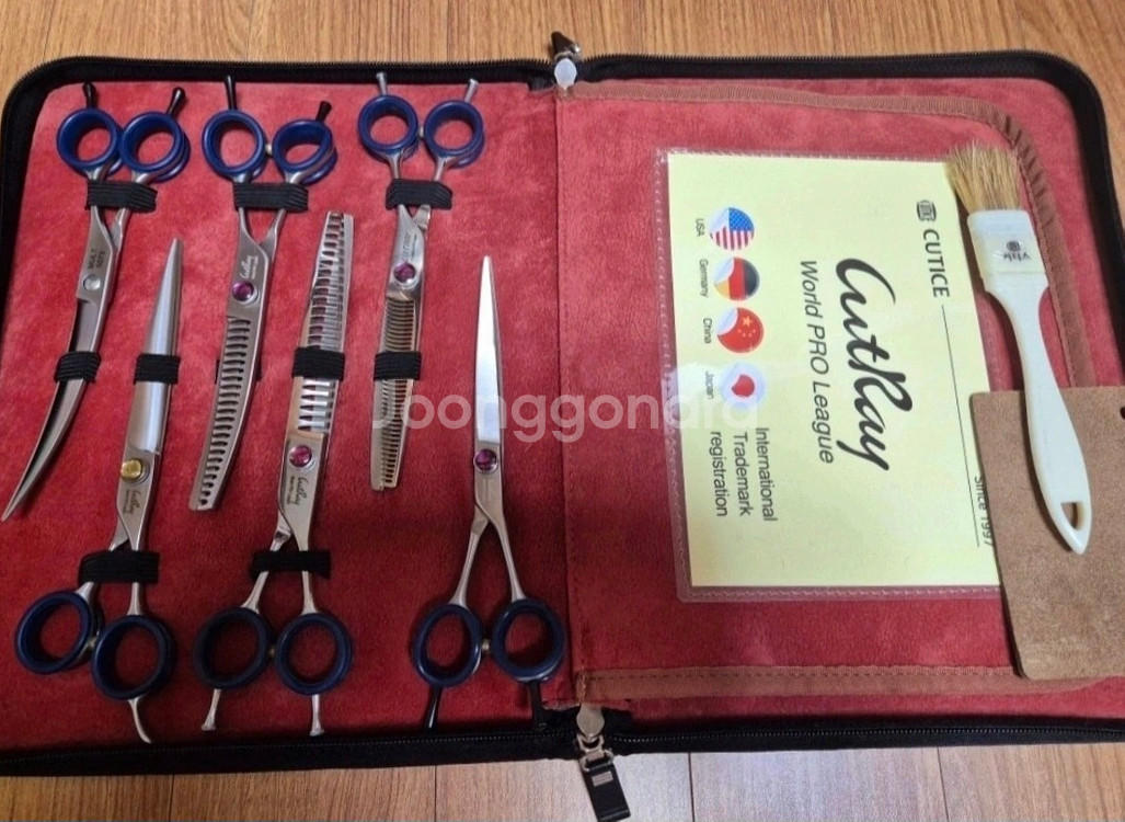애견미용가위 커티스 6종 판매합니다 가위집은 10개까지 넣을 수 있습니다 자격증은 다 땄는데 하질 않아서 판매합니다 관리상태 좋습니다(거의 새거) - 개별판매 ❌️