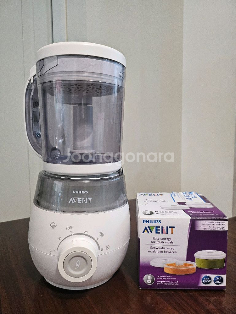 필립스 아벤트 이유식 마스터기입니다 - 스팀 기능으로 영양소 파괴를 최소화하고, 블렌딩 기능으로 간편하게 이유식을 만들 수 있습니다 - 이유식 보관 용기 2개와 함께 드립니다