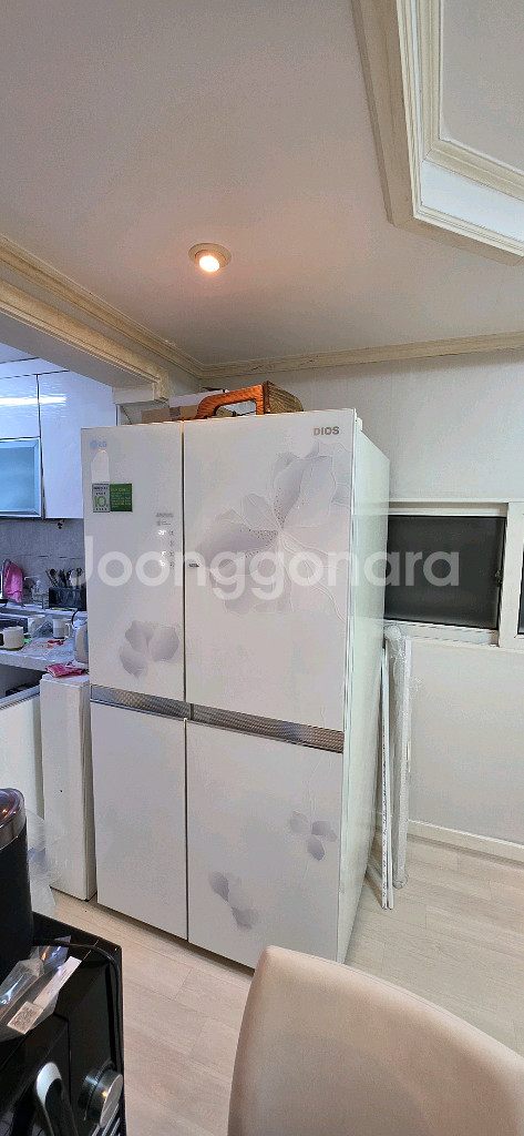 LG 디오스 4도어 냉장고 870리터 대용량으로 넓은 수납공간을 자랑해요. 화이트 컬러에 꽃무늬 디자인이 예쁘고 상태도 깨끗합니다. 주방 공간 활용도가 높아서 실용적이에요.