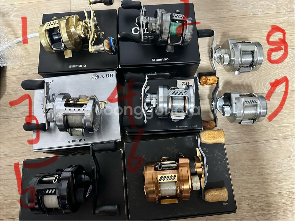 1. 21캘커타 콘퀘스트200 (보증서 박스o) - 48만원 외관 사용감 있으나 내부 상태 좋음. 리브레 120mm 핸들 튜닝. 쭈갑용으로도 굿. 2. 17캘커타 콘퀘스트bfs(보증서 박스o) - 28만원 외관 사용감 약간 있음. 계류 송어나 쏘가리 낚시릴로 유명함. 배스 피네스용으로도 아주 좋음. 3. 캘커타 콘퀘스트dc(보증서 박스o) - 23만원 사용감 많으나 릴링 아주 좋음. 디시음 까랑까랑. 4. 다이와 밀리오네어ct(박스o) - 30만원 준경량 채비 잘 날려줌. 특징은 아주 예쁨. 5. 메가배스 린 블랙정글(박스o) - 40만원 릴링좋고 전체 조구사 중 하이엔드 릴로 유명함. 신품가 125만원 6. 메가배스 린 지르코니아 메테오(박스o) - 42만원 블랙정글보다 더 상태좋음. 신품가 130정도. 7. 메가배스 린 오리진 - 35만원 마찬가지로 하이엔드. 8. 다이와 료가2020 - 20만원 배스 빅베이트용으로 좋음. 해수대응 가능. 목포 직거래 or 택배거래 가능 여러개 구입하면 팍팍 깎아드림