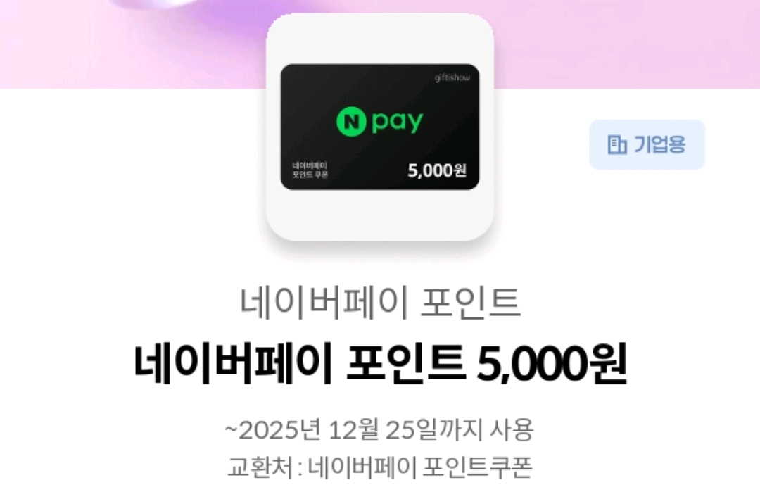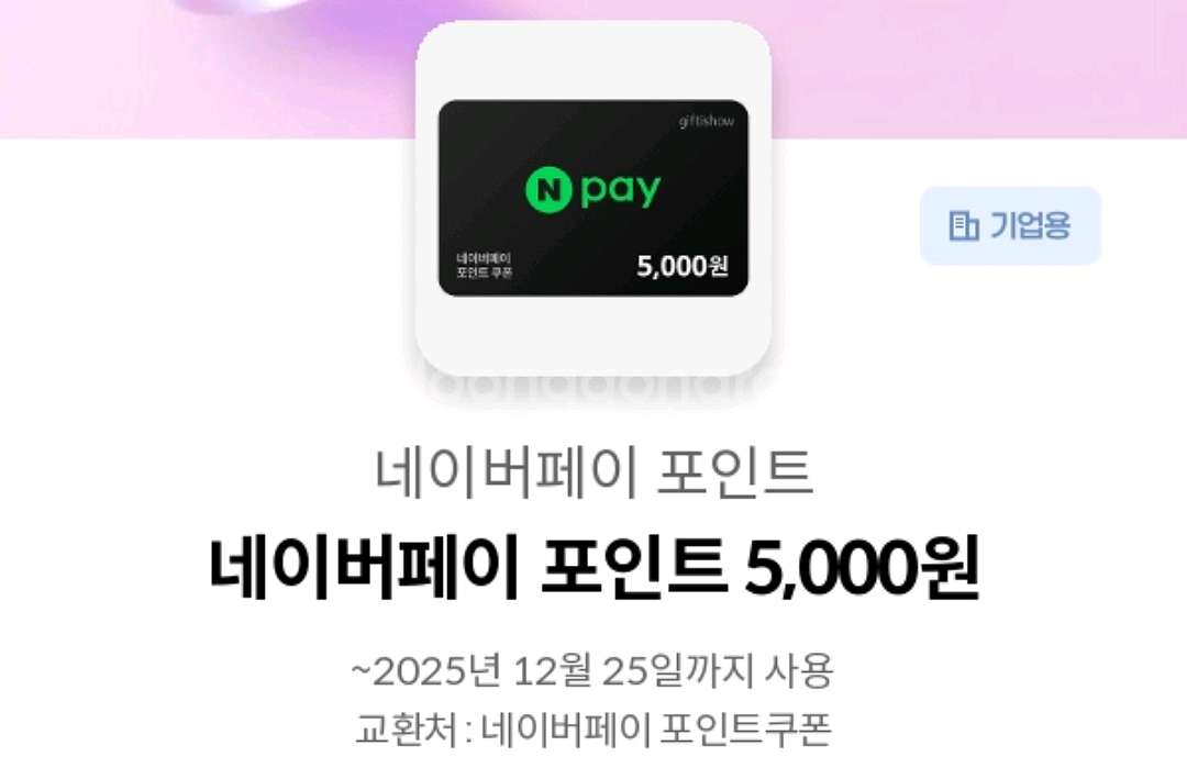 네이버페이 포인트 5,000원권 판매해요! 2025년 12월 25일까지 사용 가능하고, 온라인/오프라인에서 자유롭게 사용하실 수 있어요.