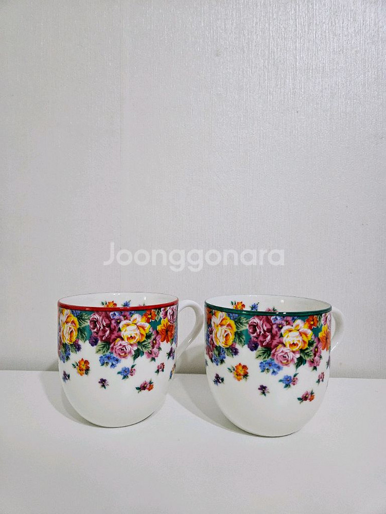 빈티지) 일본 겐조 레드, 그린 테두리가 포인트인 플라워 머그컵 2개 세트입니다. 화려한 플라워 패턴이 컵입니다. 오래전 구매하고 거의 장식용으로 보관기간이 더 길었던 머그컵입니다. 세월에 흔적이 있습니다. 약한 사용감 및 미세하게 금장(색) 손실이 있을 수 있습니다. 깨지는 제품이라 튼튼하게 포장하여 보내드립니다. 파손 되는 부분은 책임지지 않습니다. 중고거래상 반품 및 환불이 되지 않습니다. 우체국택배로 발송 ***안전거래로 구매요청하실 때에 한글성함이 아닌 영어로 이상한 이름 및 주소가 이상한 분에게는 판매하지 않습니다. 또한 번개톡 드렸는데 대답 없으시면 구매취소 됩니다. 요즘 구매자분들도 사기치시는 분들이 많아서 확인 후 물건 보내드립니다.