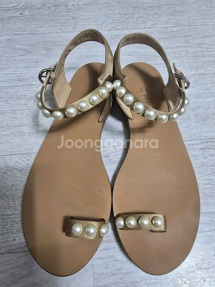 36.5 사이즈구요. 사용감은 좀 있지만 상태 좋은 편입니다. 진주가 수 놓아진 아주 예쁜 샌들 입니당! 정가 120만원 넘는데 저렴하게 내놔요.