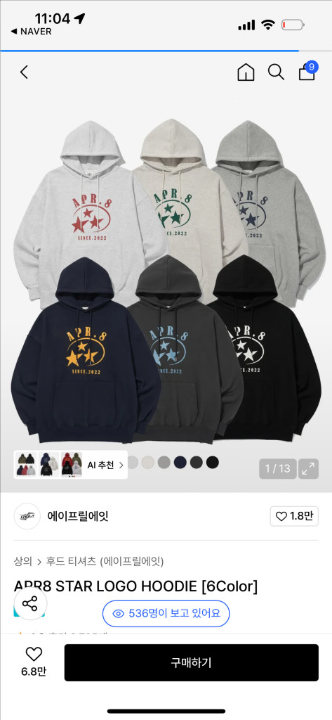 에이프릴에잇 스타 로고 후드티 -오트밀