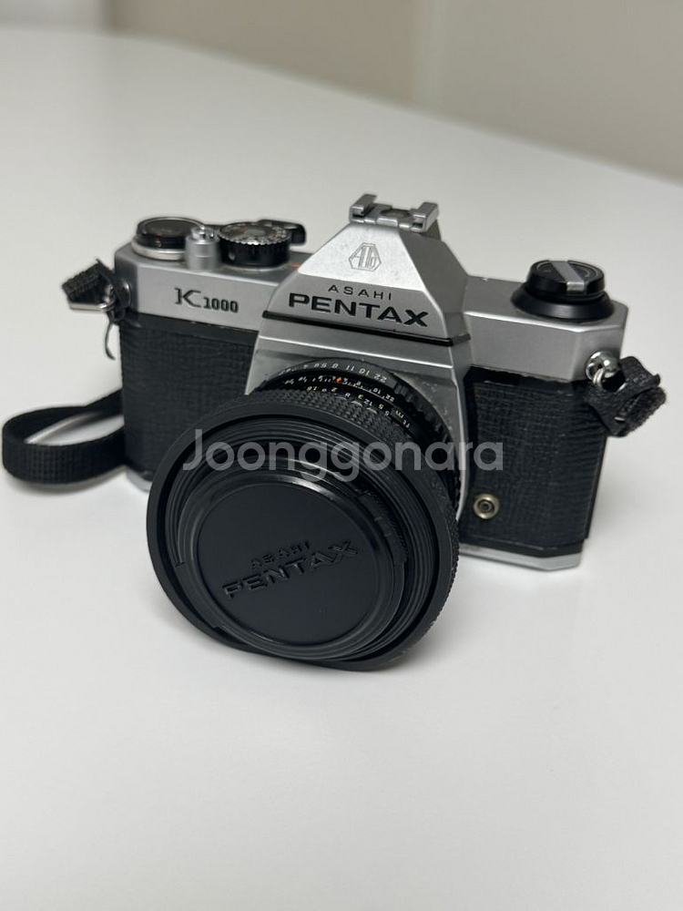 펜탁스의 클래식한 K1000 필름카메라입니다. 빈티지 카메라 좋아하시는 분께 추천드립니다. 135미리 3.5 광각렌즈이며, 카메라 뒷면 검정자국 다 지워져서 깨끗한 상태입니다