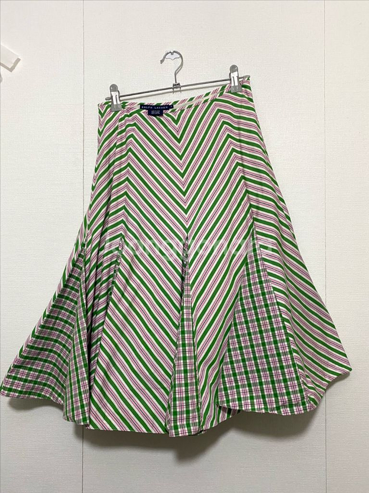 폴로 랄프 로렌 스트라이프 코튼 미디 스커트입니다. 싸이즈2 총기장 60 허리반품 32 입니다. 독특한 스트라이프 패턴이 매력적인 제품입니다~