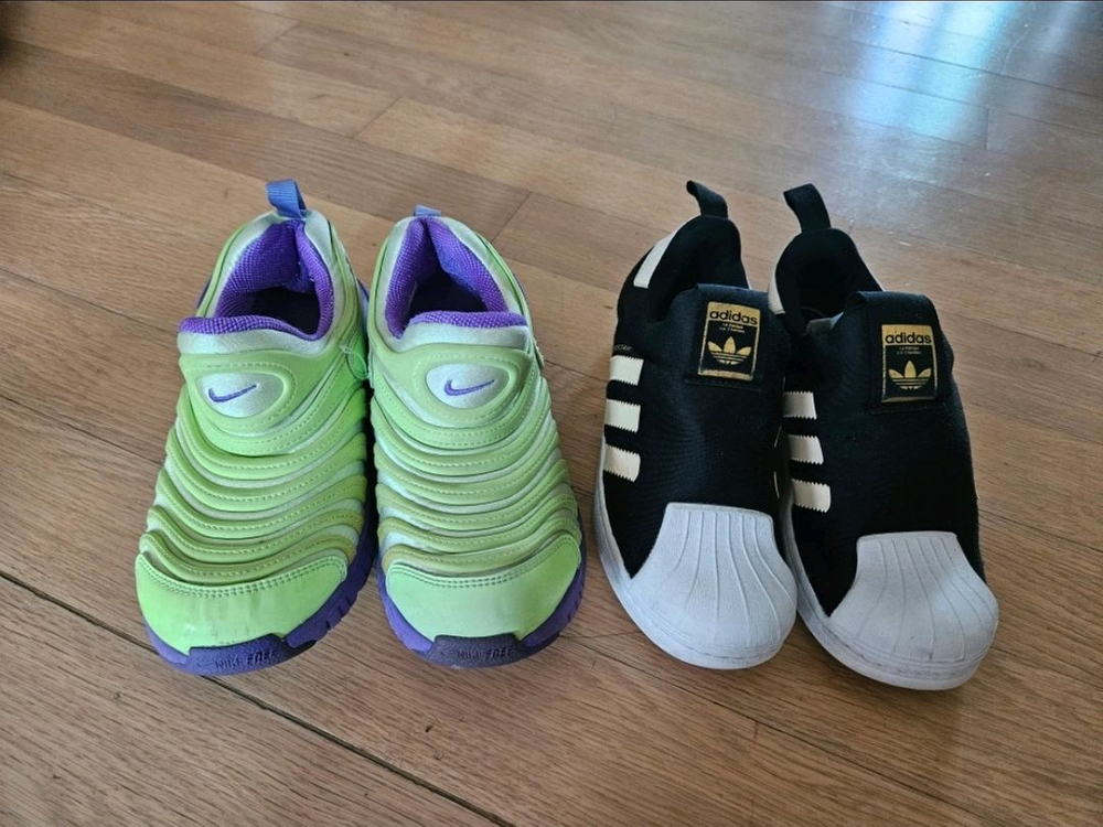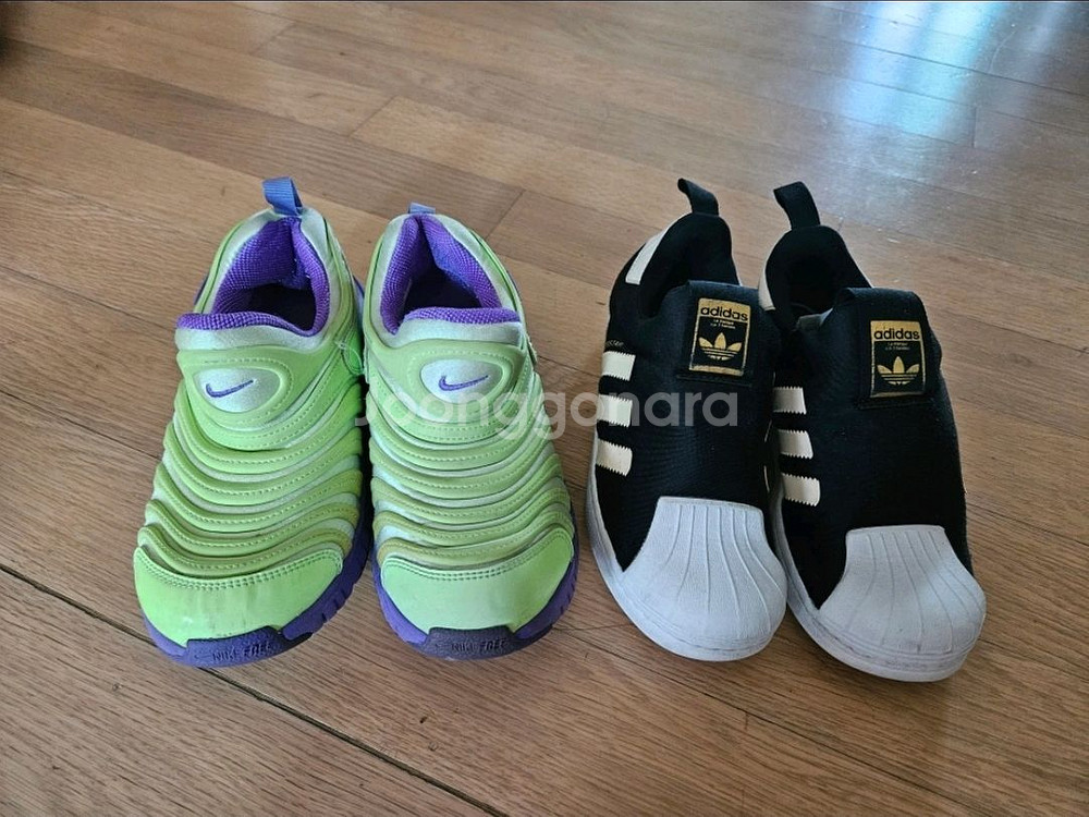 개인정보(거래정보)를 주고받는 행위는 사기에 노출될 수 있으므로 즉시 중고나라로 신고해 주세요아디다스 슈퍼스타 360과 나이키 다이나모 프리 유아 신발입니다.사용감은 좀 있지만 신발 여러개로 신어서 전체적으로 깨끗한 편입니다 편하게 신기기 좋아요~ 360에 바느질자국 좀 있어요. 예민하신 분은 사절