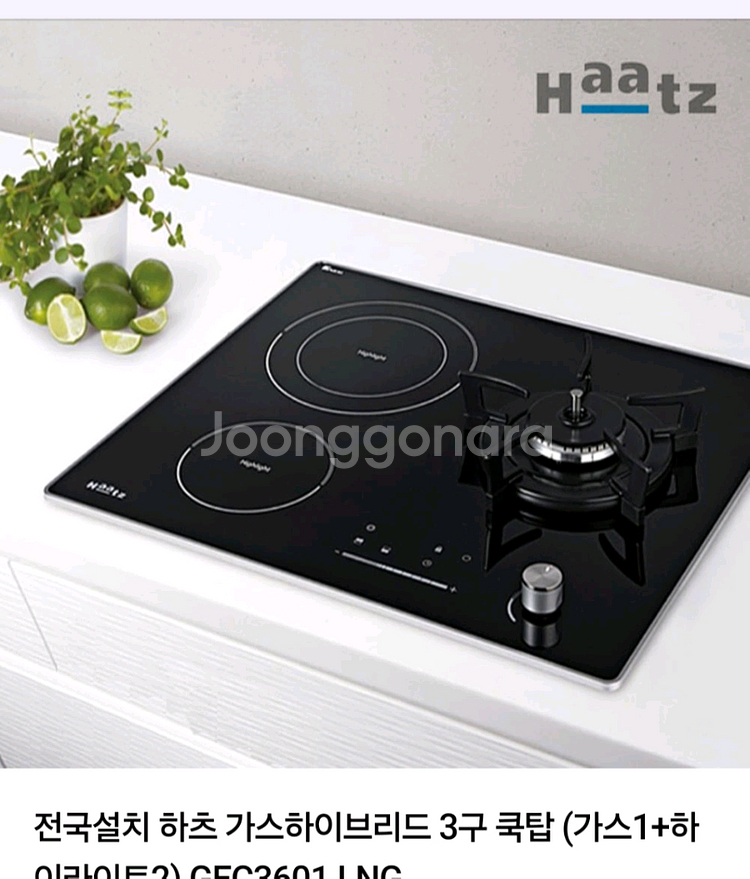 하츠 브랜드의 3구 쿡탑으로 전기 인덕션 2구 가스1구입니다 미설치 새상품.