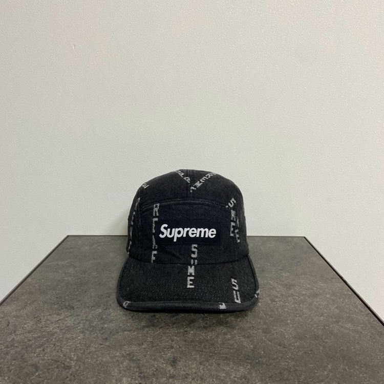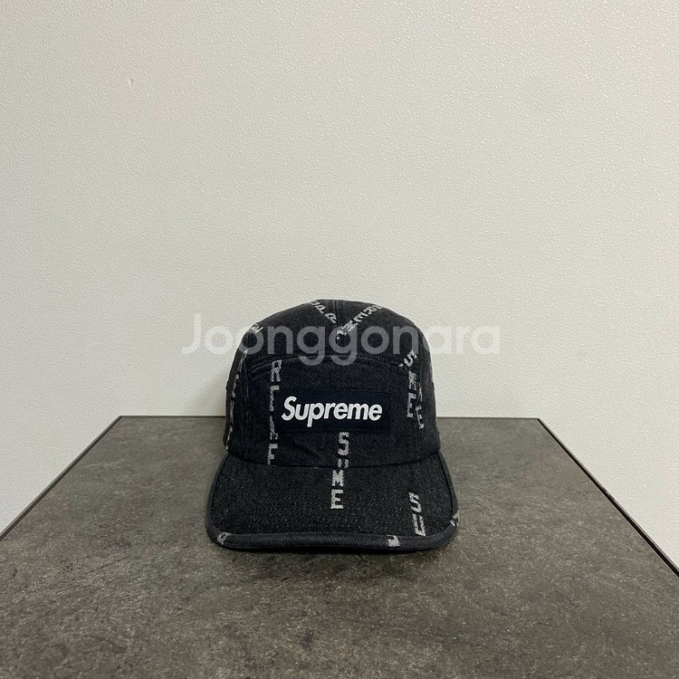 슈프림 워시드 데님 블랙 박스로고 캠프캡 모자