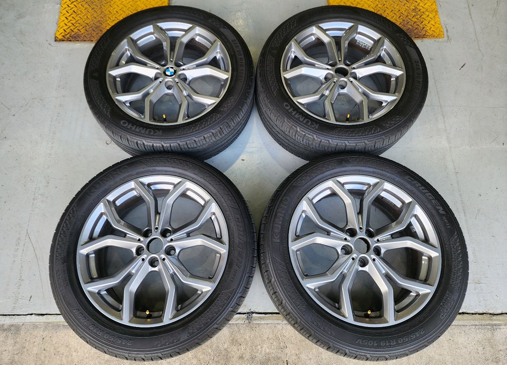 BMW 정품 x3 x4 19인치 휠타이어 한대분 휠은 중고라 사용감 있습니다. 사진참고 부탁드립니다. 복원 휠 아니며, 크랙, 굴절 수리이력 없습니다. PCD112 옵셋 7.5J32 4본 동일합니다. BMW x3, x4 G바디 차량에 장착 가능합니다. 타이어는 서비스 입니다. 원치않을시 탈거해드립니다. 휠타이어 한대분 대품조건 40만원에 판매합니다. (복원 원하시면 가능합니다. 복원비용 별도) 📦 택배거래시엔 택배비별도 입니다. 📱중고나라 앱 채팅문의 주세요^^ 24시간 문의 환영! ⭐️방문시 장착무상[✅️] 밸런스[✅️] tpms이식[✅️]⭐️ ⭐️택배가능(중고거래이기에 교환&환불 안됩니다)⭐️ ■ 사진은 판매상품 원본사진입니다. ■ 모든 판매상품은 실내보관합니다. 경기도 화성시에 위치해 있습니다. 방문장착시 미리 예약해주세요!!! 감사합니다🤗
