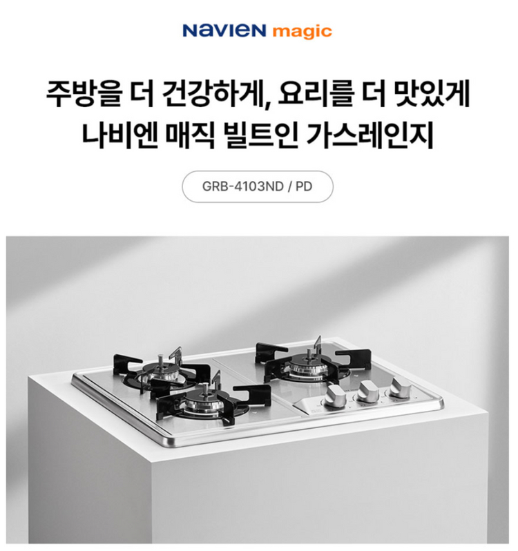 개인정보(거래정보)를 주고받는 행위는 사기에 노출될 수 있으므로 즉시 중고나라로 신고해 주세요나비엔 매직 빌트인 가스레인지 GRB-4103 미개봉 새상품입니다 - 560×430 타공 사이즈
