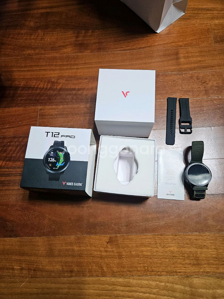 보이스캐디 T12 Pro 골프워치입니다 구매 후 2회 착용한 신품급 컨디션입니다. - 박스, 설명서, 추가 스트랩 포함되어 있습니다 - 고성능 GPS로 정확한 거리 측정이 가능합니다 - 핀 어시스트 기능으로 더욱 편리하게 사용 가능합니다 - 골프 거리 측정에 아주 유용한 제품입니다
