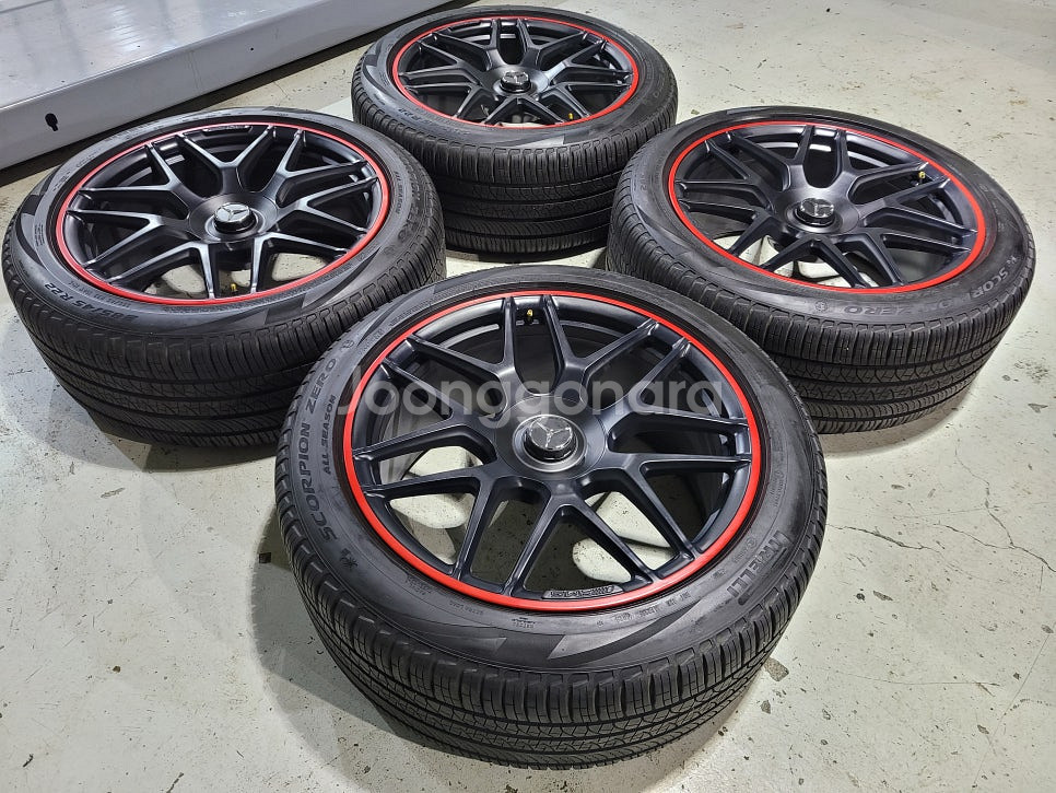 벤츠G바겐 G63AMG 퍼포먼스 에디션1 22인치 순정품휠타이어 한대분 판매 휠상태 무기스 깨끗 상태 매우좋습니다 실매물.실사진입니다~~ 피렐리 올시즌 사계절 프리미엄타이어 285.45.22 네짝 동일 한대분입니다 새거장착후 한달도안쓴 보관되잇던 신품급타이어 한대분입니다 타이어트레이드 99%급입니다 한차에서쓰던 한대분입니다~~ 휠타이어 일괄 한대분 다해서 기존휠타이어 대품주시고 600만원에판매 대품없이 그냥 구매시 650만 오시면 무료장착 해드립니다 문의는 010-6595-1134 육오구오 일일삼사