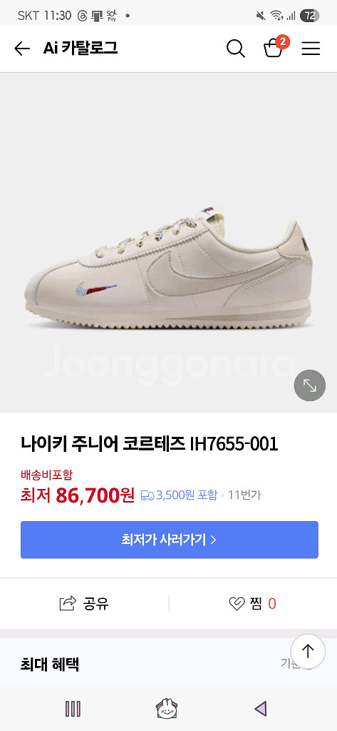 개인정보(거래정보)를 주고받는 행위는 사기에 노출될 수 있으므로 즉시 중고나라로 신고해 주세요나이키 주니어 코르테즈 IH7655-001 입니다. 택은 잘랐지만 실내에서 시착만한 새상품이고, 박스도 같이 드려요~ 흰색 바탕에 나이키 로고가 포인트로 들어간 디자인입니다 택포 51,000 이예요~ 중고이다보니 예민하신분은 피해주시고 환불불가합니다~