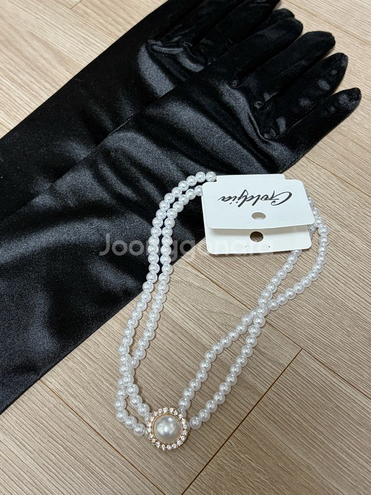 웨딩촬영 때문에 구매한 진주 목걸이와 블랙 장갑이에요~~ 티아라를 썼더니 진주 목걸이가 과해보여서 그냥 안 했습니다 ㅎㅎ 진주목걸이: 미착용 장갑: 1회 착용 ⭐️택배비 미포함 금액입니다