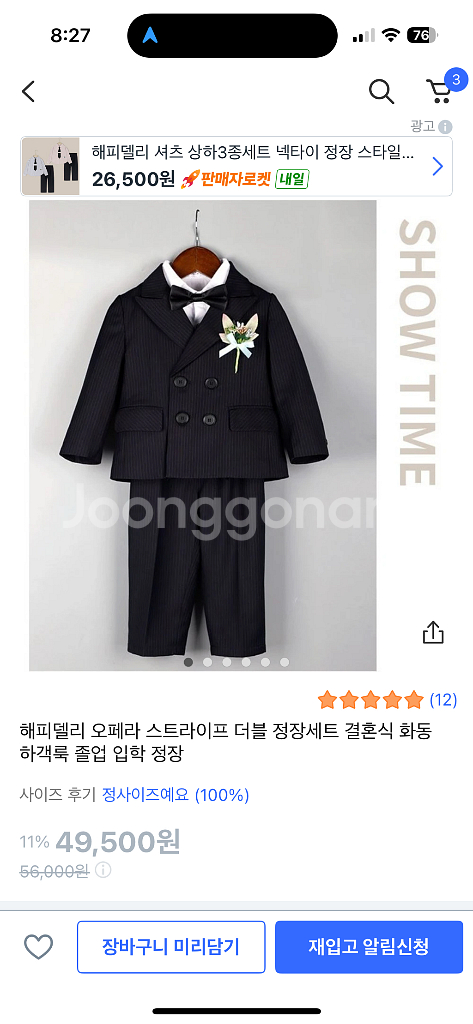 남아용 블랙 정장 세트예요. 쿠팡에서 구매 후 한번만 입고 보관중입니다. 저렴하게 가져가세요. 정장사이즈 130. 신발 190 택포 4.5만원