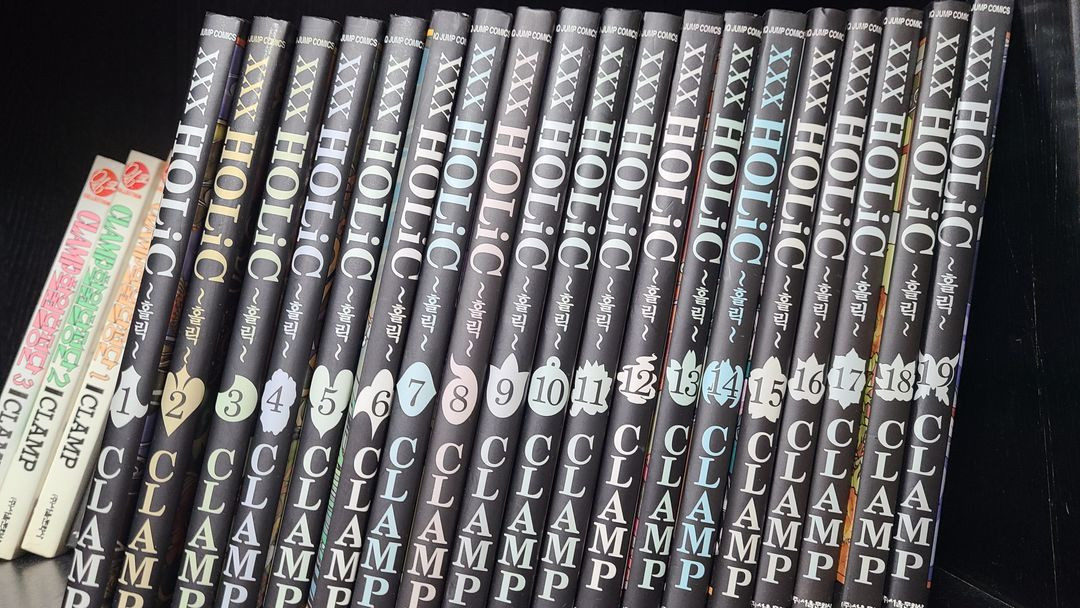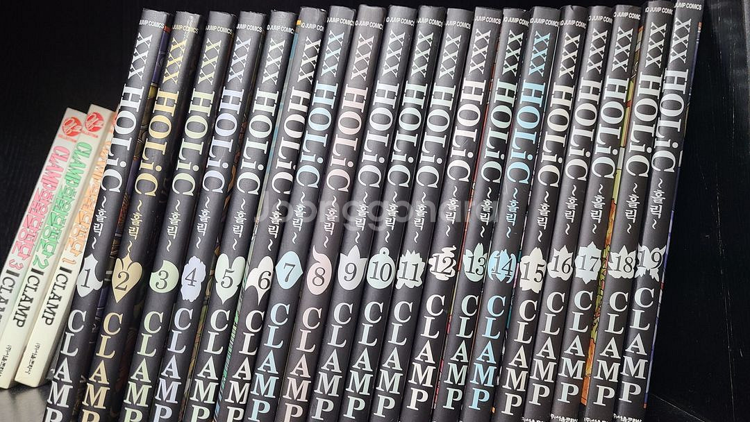 클램프 작품 xxxHOLiC 단행본 1~19권 판매합니다. 소장용으로 보관하고 있던 거라서 전체적으로 상태는 좋은편입니다. 다만 세월이 많이 흐른데다 표지 커버 자체가 구매할때 부터 비뚤어지게 접힌게 있어서..; 커버부분이 구겨진 부분이 좀 있네요...사진 참고바랍니다. 배송비 포함해서 150,000원에 판매하겠습니다. 필요하신분 연락주세요 *홀릭 공식 가이드북 같이 보내드립니다.* (마지막 사진 참고)