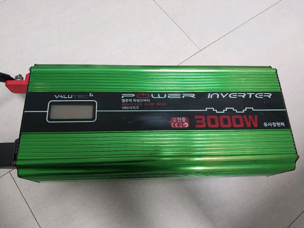 벨류텍 인버터 12v 3000w (유사정현파) 지인분에게 양도 받아서 사용하다 업그레이드로 판매. 합니다. (정상작동 확인 했습니다.) 플러스( + ) 단자 나사 녹이 좀 있습니다. 사진 이미지 참고해 주시고 사용에는 문제 없습니다. 구성품은 이미지에 있는게 전부 입니다. 중고 상품으로 생활 기스나 본체 케이스 찍힘 있으며 사용감 있습니다. 예민하신분은 패스해 주세요. 구매후 불량 아니면 교환 환불은 불가하니 구매하실때 꼼꼼히 보시고 구매 부탁드립니다.