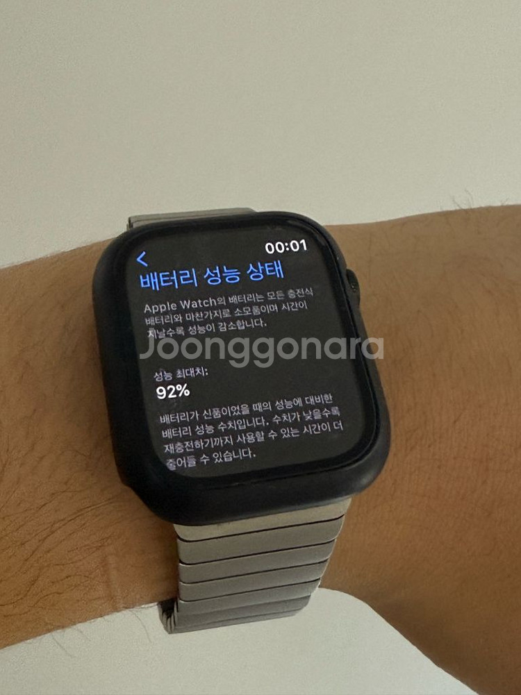 개인정보(거래정보)를 주고받는 행위는 사기에 노출될 수 있으므로 즉시 중고나라로 신고해 주세요애플워치 7 45mm 32G 구성품 없습니다 배터리 성능 상태 92%로 양호합니다 스테인리스 스틸 밴드와 액정보호케이스 상태로 드려요 생활기스 사진 참고해주세요 애플워치 사용이 익숙치 않아 정리합니다