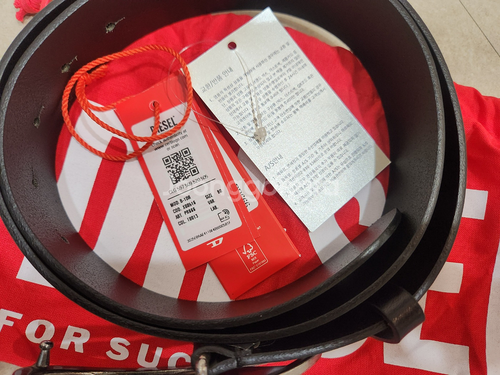 공10 칠466 칠칠칠5 디젤 정품 남성용 가죽벨트입니다. 실버 메탈 버클과 레드 포장지가 포함되어 있고, 상태 양호해 보여요. 디젤 정품 소가죽 벨트 판매합니다. 사이즈 90/36 실착 5회 미만 거의 새것 직거래 장소: 부산시청역 옆 양정청소년수련관 네고 불가