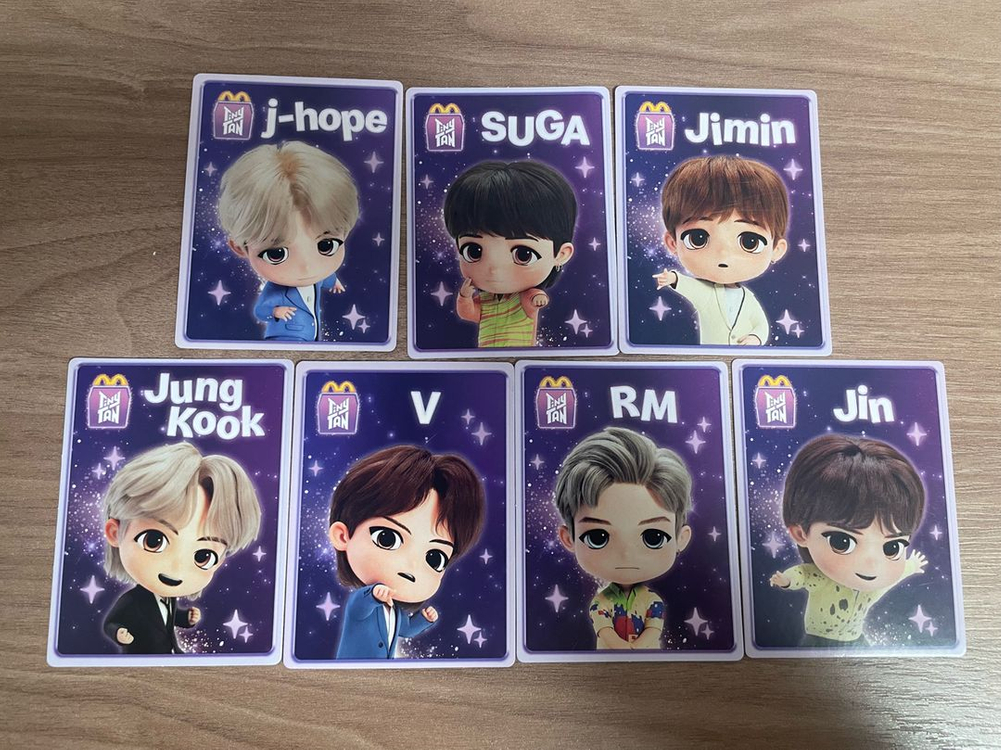 개인정보(거래정보)를 주고받는 행위는 사기에 노출될 수 있으므로 즉시 중고나라로 신고해 주세요1개씩 포장 했습니다 슈가는 구겨진 부분이 있고 멤버들 조금씩 스크래치가 있습니다 감안해서 판매합니다 반택 가능합니다 +1900
