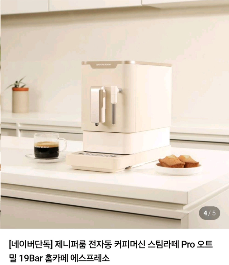 제니퍼룸 전자동 커피머신 스팀라떼 Pro 판매합니다. 모델명은 오트밀 JRK-SEM0212BR 입니다. - 19BAR 고압력 추출 - 18cm 한뼘 사이즈 - 스팀 노즐로 라떼까지 - 간편하게 원터치로 작동 - 코니컬버 그라인더 탑재 - 스마트 디스플레이 - 간편하게 자동 세척 시스템 - 미사용/ 박스 미개봉 으로 완전 새제품 입니다. - 라떼도 가능한 Pro 버전입니다. - 네이버 단독 컬러인 오트밀 입니다. 정가 : 599,000원 쿠팡 최저가 : 439,000원