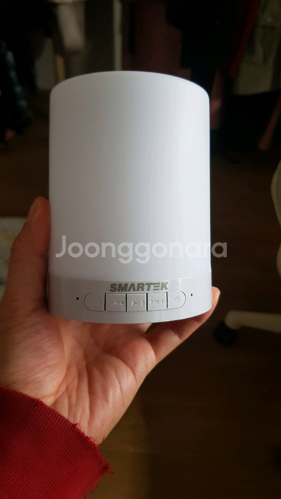 스마트폰용 무선 스피커예요. SMARTEK 무드등 블루투스 스피커 TR-S120 모델입니다 - 은은한 LED 조명으로 분위기있는 연출이 가능합니다 - 터치로 간편하게 색상 변경이 가능합니다 - Micro SD, AUX, DC 5V 단자를 지원합니다 - 2200mAh 배터리 용량입니다 산지 1년 정도 됐고 사용은 한 달 정도 쓰다가 안 쓰고 계속 두기만 하는게 그래서 판매합니다. 작동 이상 없습니다 1. 가격 네고, 협상 안 합니다. 안 팔리면 제가 알아서 천천히 할인해서 재업할 생각입니다. 가격 할인 문의 주지마세요 2. 택배비용은 별도입니다 위 판매격에 편의점 택배는 +2,500원 일반택배는 +4,000원 추거됩니다. 3. 중고나라 앱 채팅으로만 문의 주세요.
