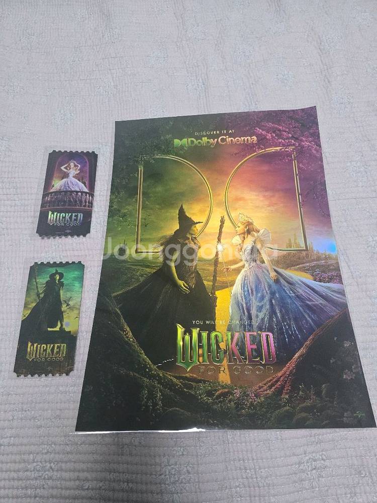 위키드 오리지널 티켓 글린다, 엘파바, 돌비 포스터 팝니다. 사진처럼 오리지널 티켓 두장, 포스터 한장 구성입니다. 가격은 35,000원 입니다.