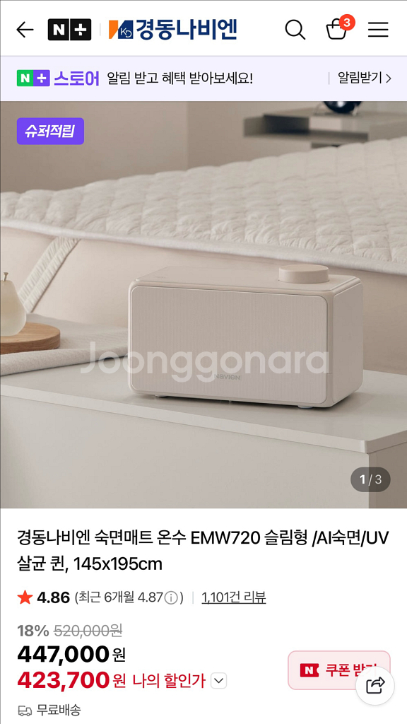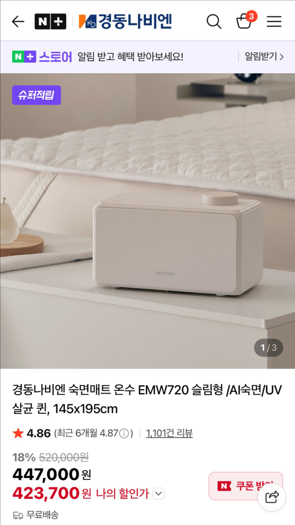 경동나비엔 숙면매트(온수매트) EMW720 퀸사이즈 판매합 니다! - 분리난방 기능으로 좌우 온도를 다르게 설정할 수 있습니다 - 700ml 물탱크로 넉넉하게 사용 가능합니다 - 과열방지, 동파방지 기능으로 안전하게 사용 가능합니다 - 음성안내 기능으로 편리하게 사용 가능합니다 - 28~45도 온도조절 가능합니다 2025년 10월 22일에 구매해서 약 한달간 사용했어요! 매트가 얇아서 좋고, 나비엔 어플로 끄고 켤 수 있고 온도조절 까지 가능해서 밖에서도 누워서도 온도 맘대로 조절할 수 있 어서 참 좋습니다! 그럼에도 불구하고 판매하는 이유는 저는 만족했는데 남편이 온수매트가 취향이 아닌지 전기장판으로 바꾸자고 해서 사용 한지 한달만에 판매합니다 🥲 군자역 근처 가지러 오시거나 멀지 않으면 가져다 드릴 수도 있습니다