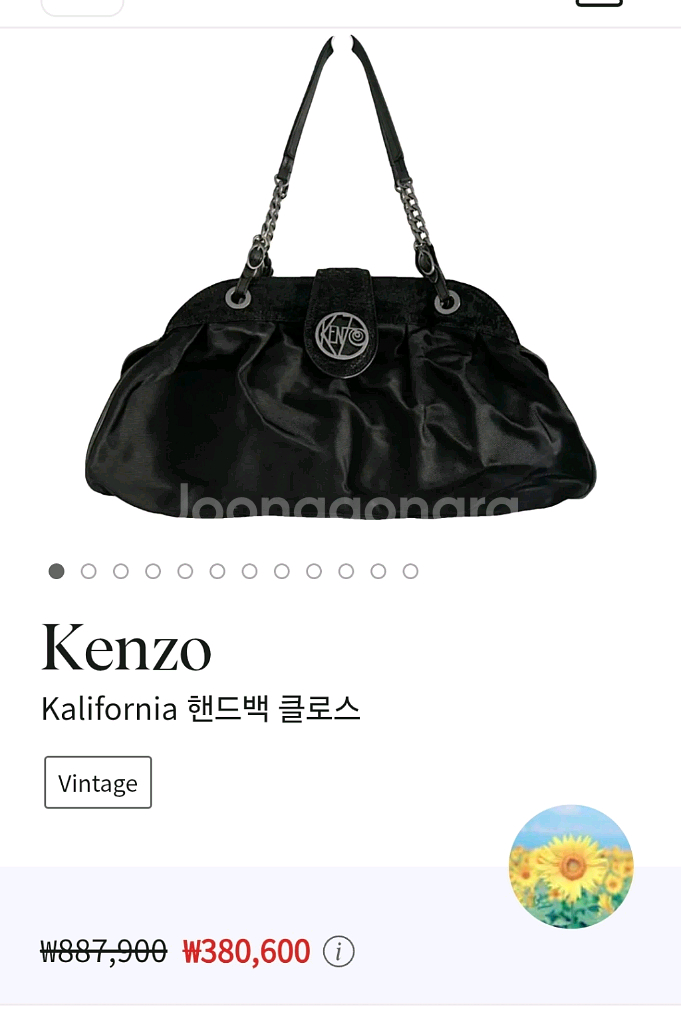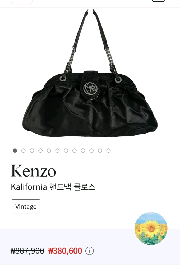 Kenzo Kalifornia 빈티지 체인 핸드백입니다. 이탈리아 피렌체 The Mall 아울렛 Kenzo 매장에서 직접 구매한 정품이에요. 고급스러운 새틴 블랙 소재에 체인 스트랩 포인트가 있어 데일리룩·하객룩·연말룩 어디든 잘 어울립니다. 【상품 정보】 • 컬러: 블랙 • 구성: 본품 단독 • 상태: 전체 양호(자연스러운 사용감) 정가 약 €475 • 더몰 아울렛 구매가 €370 약 64만원 • 현재 리셀 시세 약 ₩380,000 전후 확인됨 → 제 판매가: ₩180,000 약간의 사용감 및 No박스인 관계로 18만원에 드립니다 📦 택배 가능 / 해운대 마린시티 제니스 근처직거래 가능 문의 언제든지 주세요!