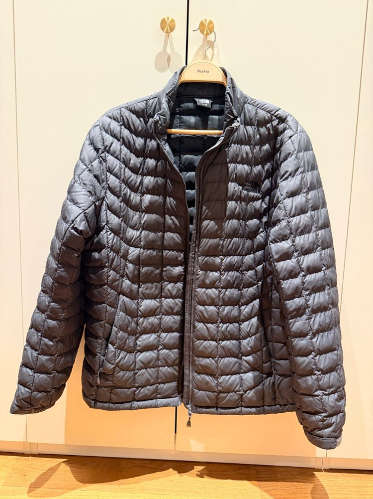 노스페이스 테크 패딩 자켓 깔깔이 105(XL) 사이즈로, 검은색이 도는 그레이 색상입니다. 상당히 솔리드하면서도 부드러운, 고급스러운 제품입니다. 상태 좋습니다.