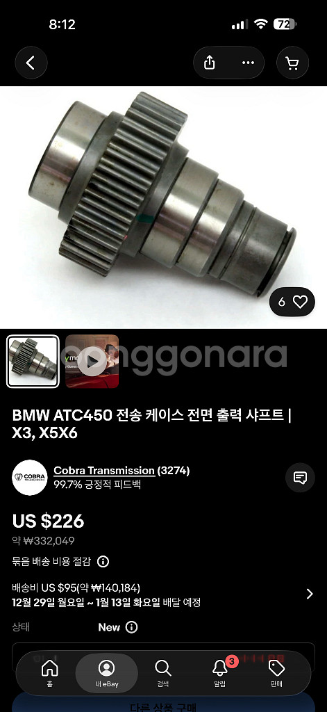 부품명 • BMW ATC450 트랜스퍼케이스 출력축 기어 / 스플라인 샤프트 • ATC450 장착 모델용 (X6 E71 / X5 E70 등) 부품 상태 • 정품(Used Genuine) • 기어 톱니 마모 없음 • 스플라인 깨짐/치식 없음 • 녹·피팅 부위 양호 • 새제품 이베이에서 구매 기능 문제 없음 적용 차종(참고용) • BMW X6 E71 (2008~2014) • BMW X5 E70 (2007~2013) • ATC450 트랜스퍼케이스 모델 ※ 차량마다 부품번호 다를 수 있으니 장착 전 호환성 확인 필요 부품번호(OE Reference) • 27107643752 • 27107643751 (참조용이며 실제 사용차량에 따라 상이할 수 있습니다.) 판매 이유 • 트랜스퍼케이스 수리용으로 보관하던 재고 • 차량 처분으로 불필요하여 판매